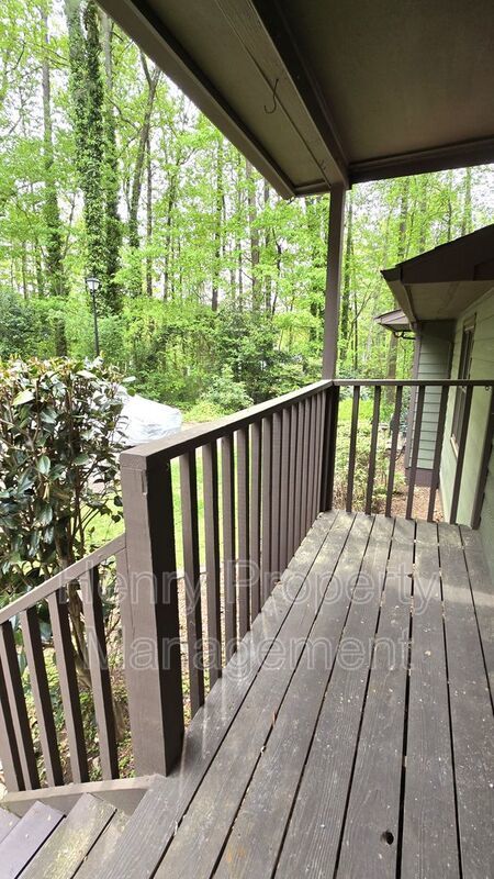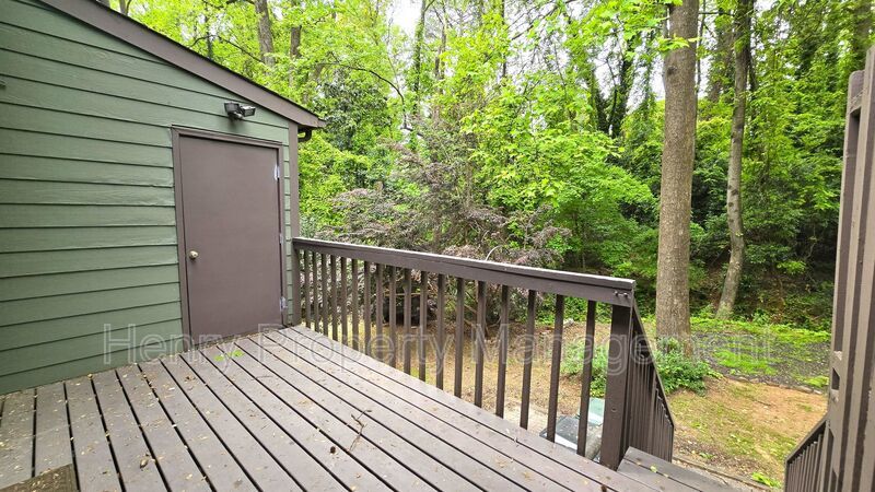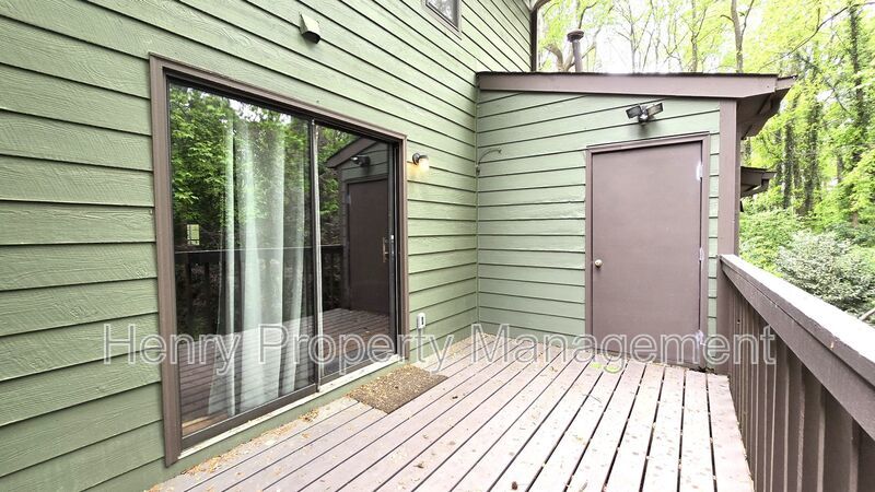 Private deck and patio overlooking woods. Exterior storage closet with workshop area.